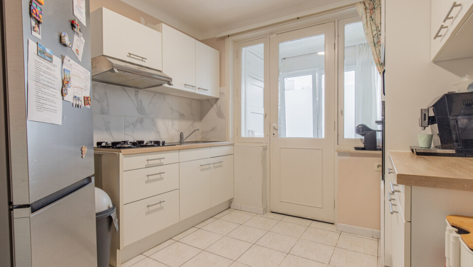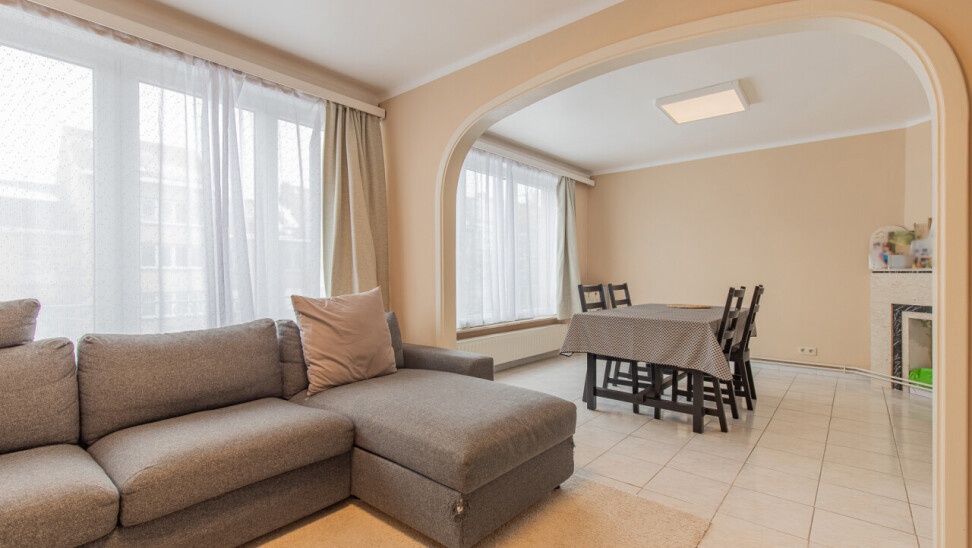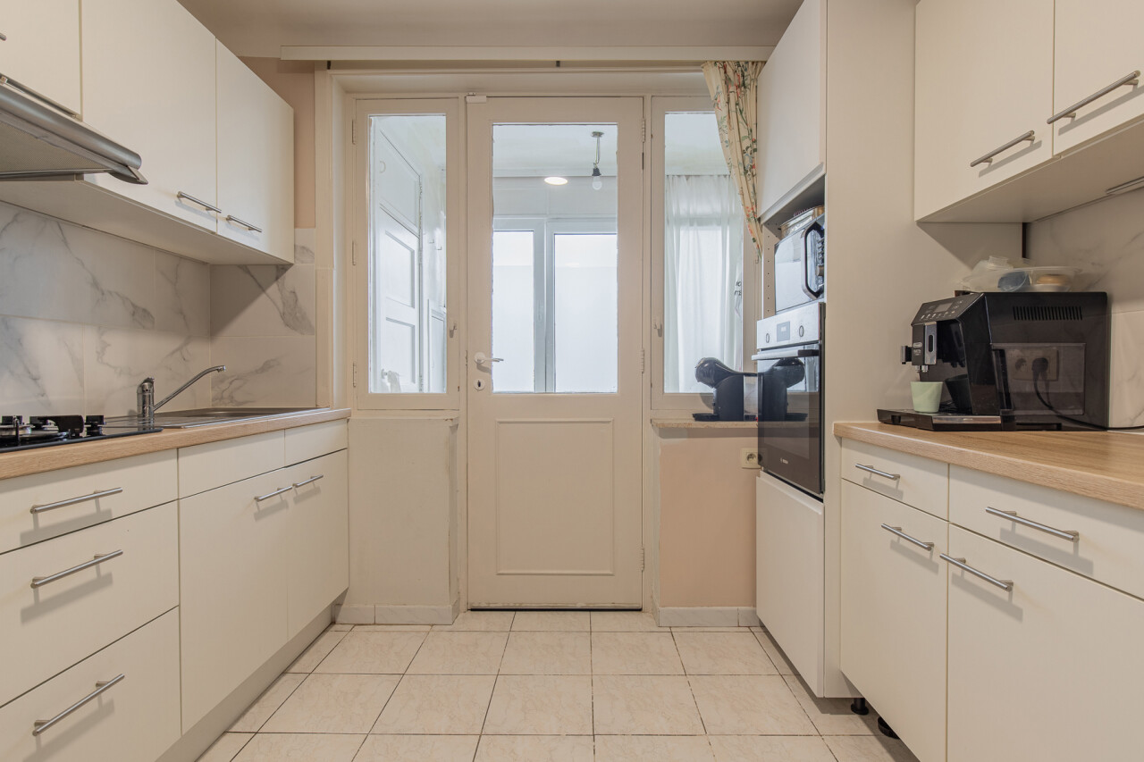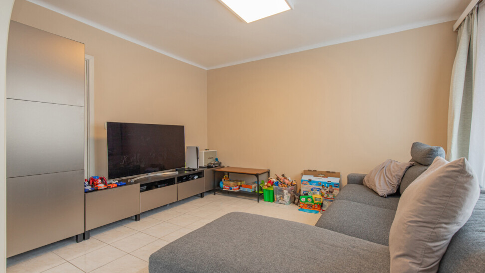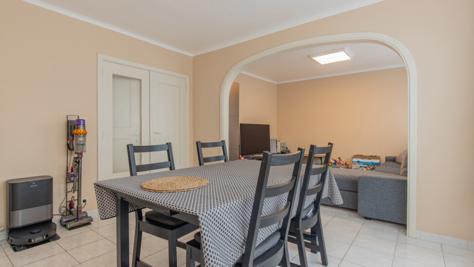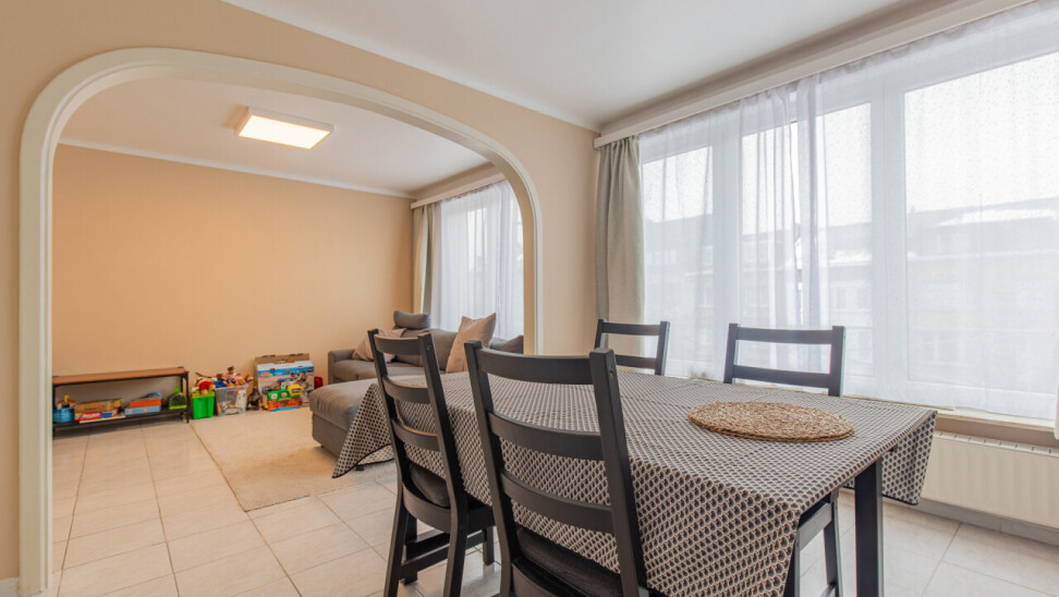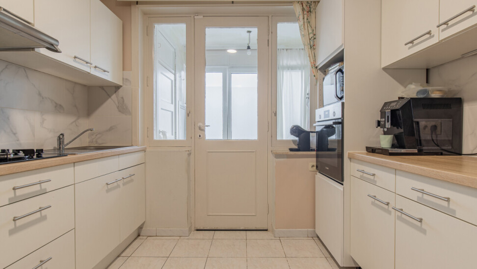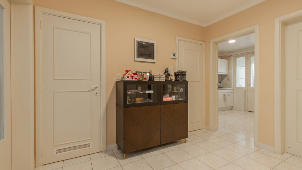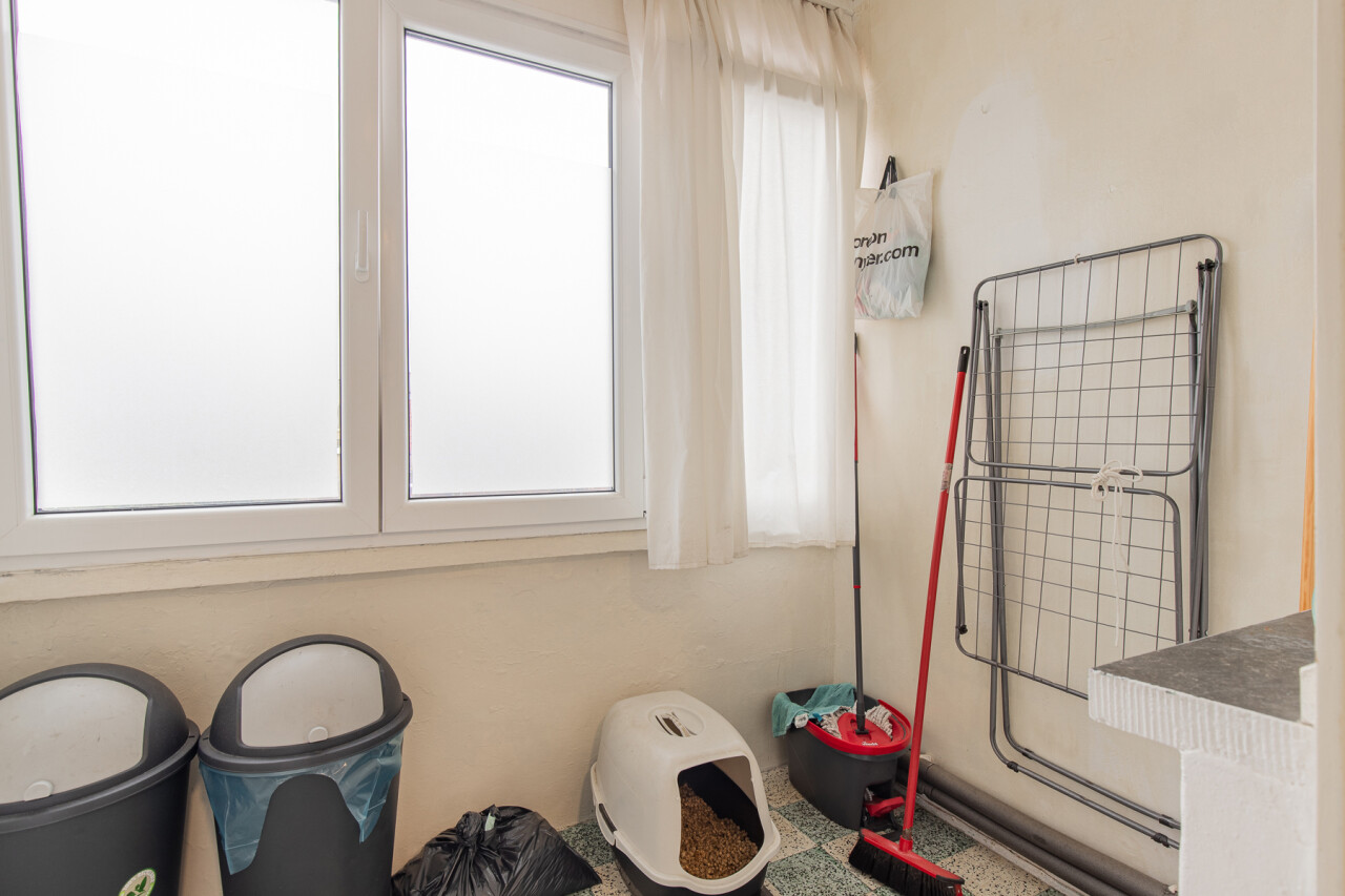 Bij het binnenkomen word je verwelkomd in een nette inkomhal die uitgeeft op een gezellige en lichtrijke leefruimte. De volledig uitgeruste keuken beschikt over alle nodige toestellen en biedt ruime kastruimte. Aansluitend bevindt zich een praktische berging. De wasmachine kan geplaatst worden in de gemeenschappelijke waskelder, samen met de droogkast.