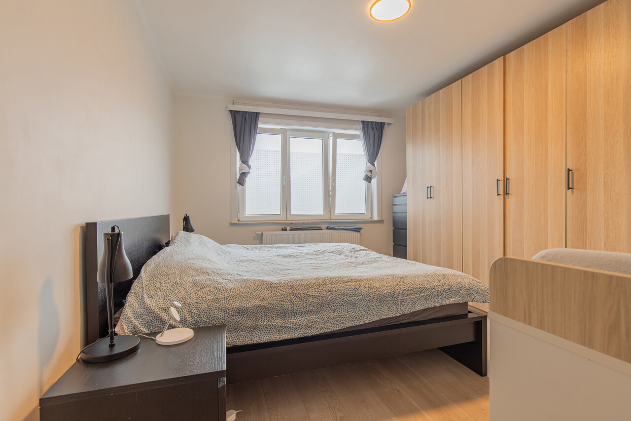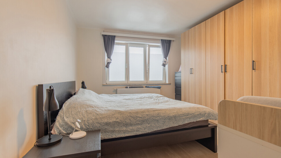 Het appartement telt momenteel één grote volwaardige slaapkamer. Oorspronkelijk waren er twee; één slaapkamer werd geïntegreerd om een ruimere living te creëren. Wie dat wenst, kan hier eenvoudig opnieuw een tweede slaapkamer voorzien zoals op plan.