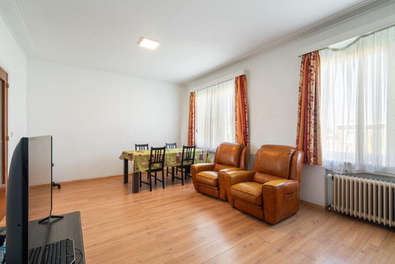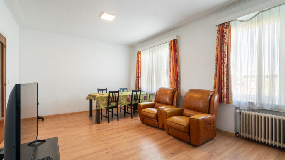 Bij binnenkomst komt u in een inkomhal die leidt naar de keuken en de gezellige woonkamer met een mooi vrij uitzicht. De nachthal geeft toegang tot de badkamer (te renoveren) en twee slaapkamers.