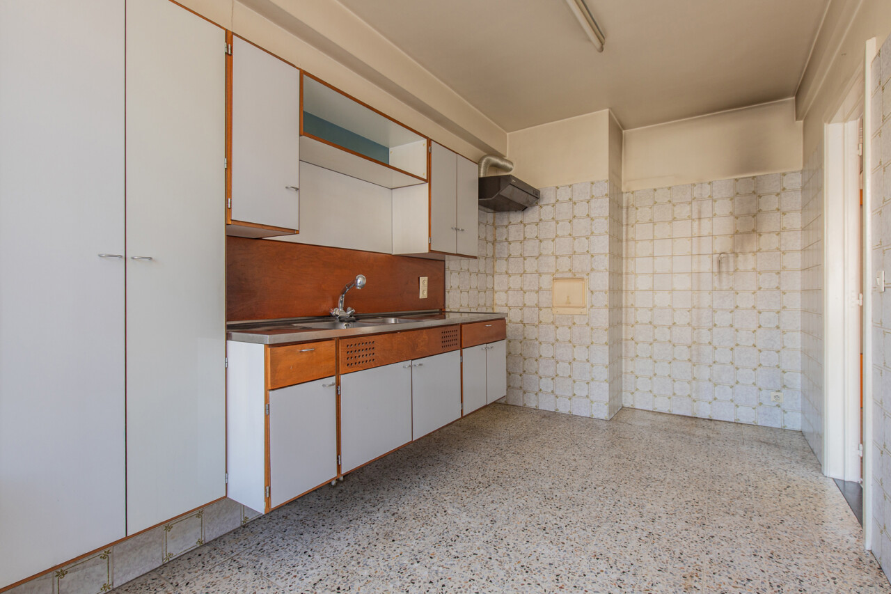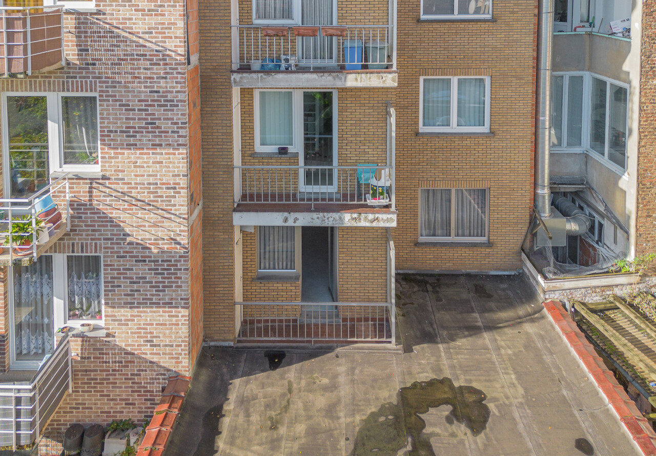 Het appartement biedt een mooie basis met veel potentieel om naar eigen smaak en stijl om te vormen tot een aangename woonruimte. Ze heeft 2 slaapkamers achteraan en een terras. Inclusief staanplaats in het gelijkvloers en een kelder. Onmiddellijk beschikbaar bij akte.