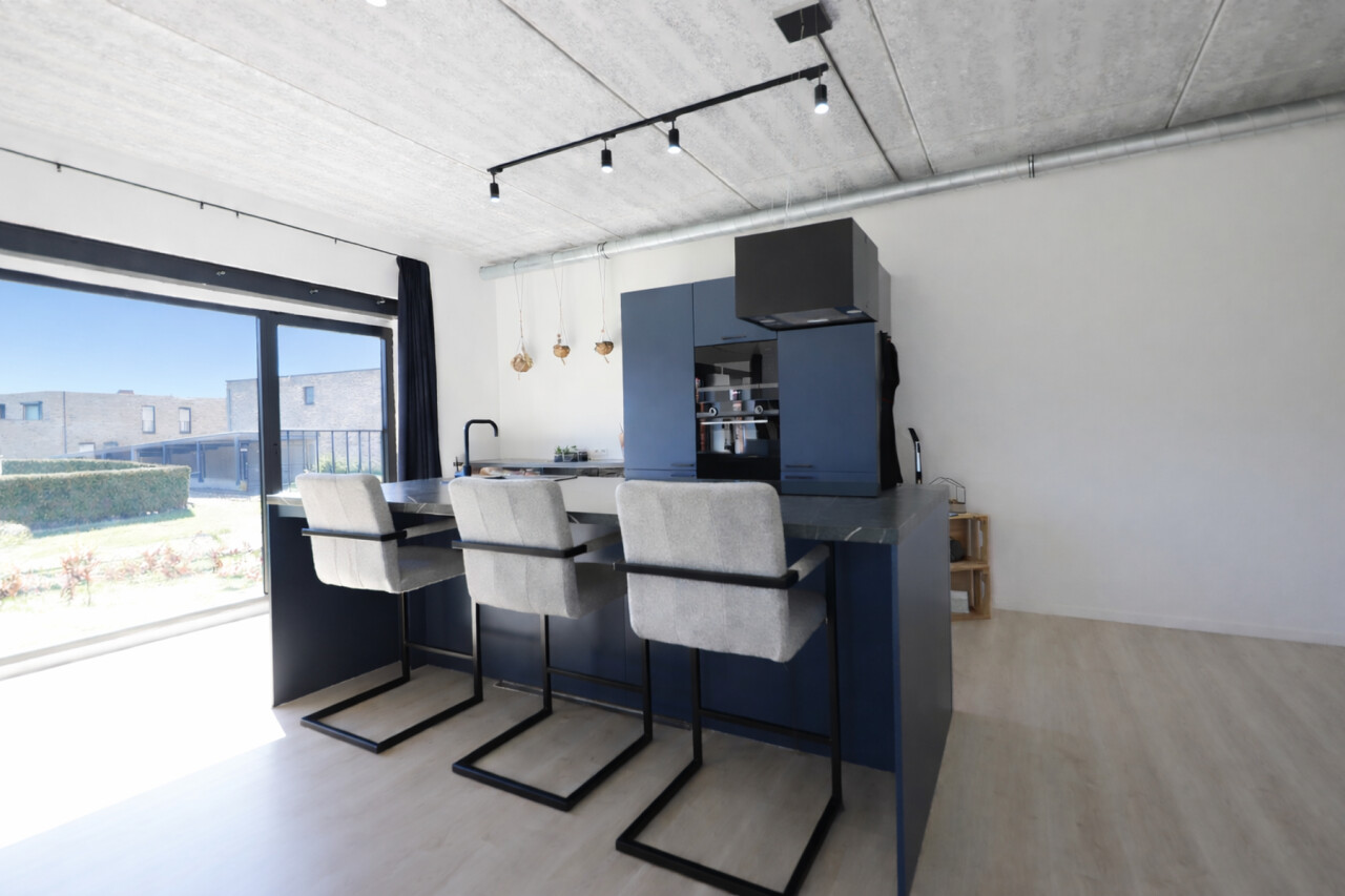 Binnenin beschikt het appartement over een praktische indeling met een aangename leefruimte en een functionele keuken. Er is veel maatwerk en dus veel kastruimte. Alles is aanwezig om comfortabel te wonen, met als extra luxe uw eigen buitenruimte.