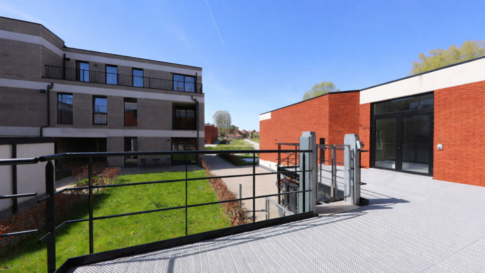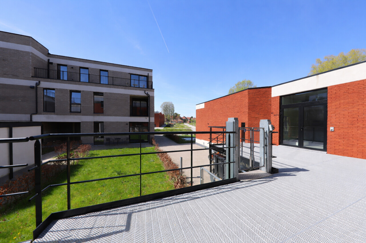 Gelijkvloers wonen (geen trappen), voorziening voor rolstoelgebruikers aan de ingang van het gebouw.Contacteer ons vandaag nog voor een bezoek en ontdek zelf deze unieke woonervaring.