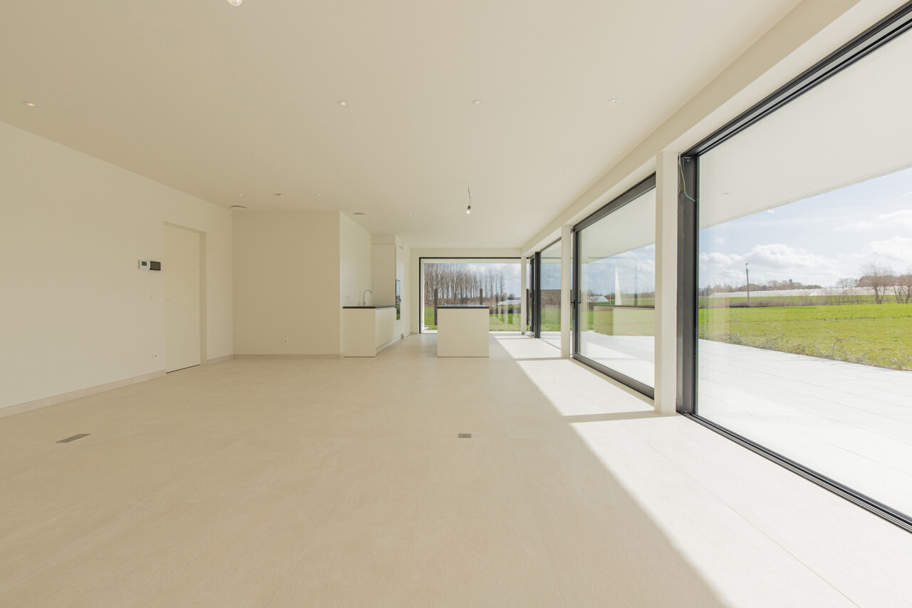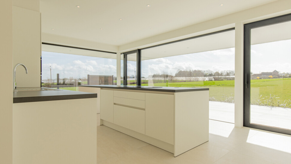 Woonkamer 48m² met zicht op de tuin en een open eilandkeuken 20m².