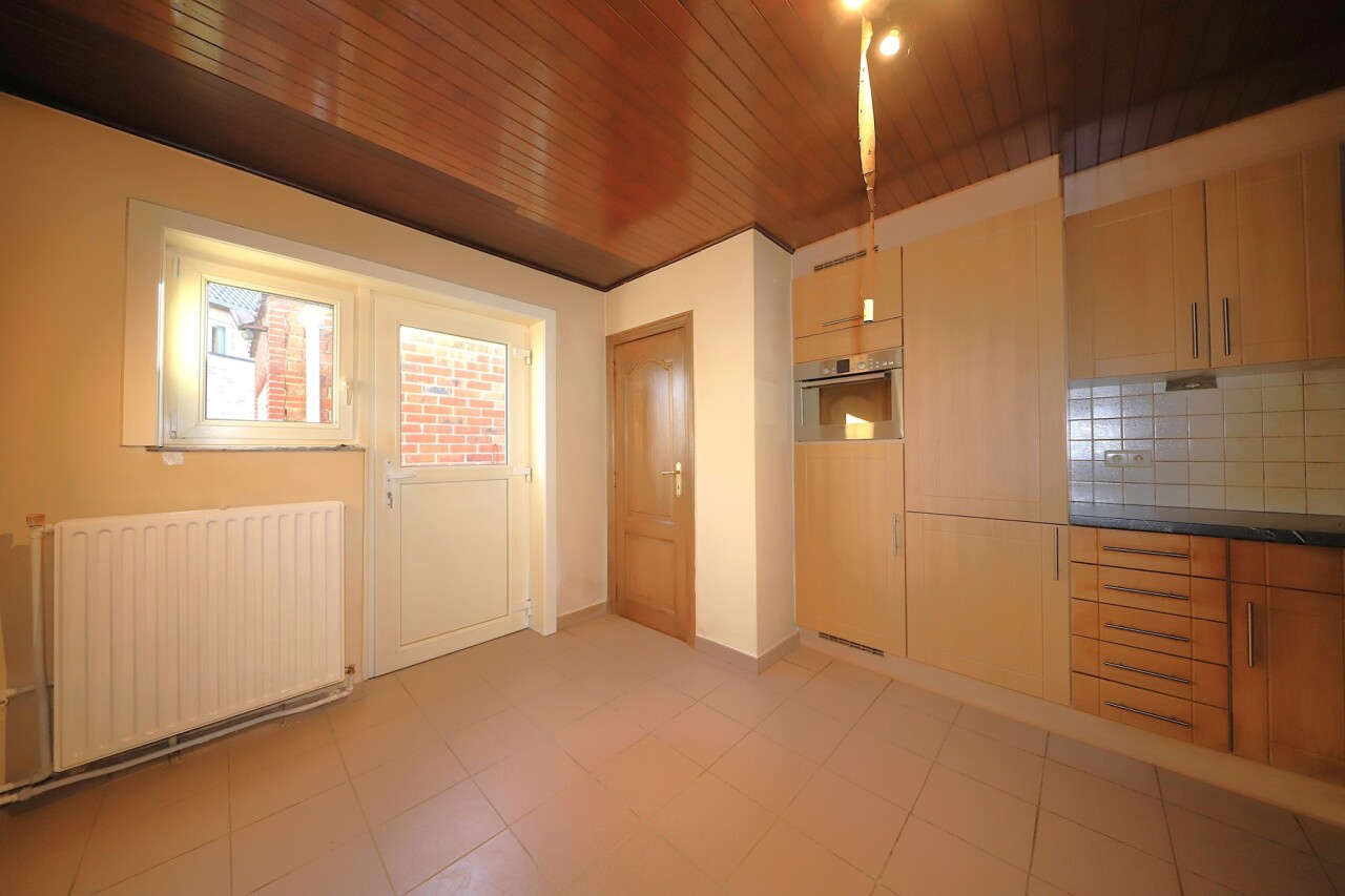 Binnen biedt de woning een praktische indeling met een inkomhal, toilet, een ruime woonkamer en extra eetkamer, een keuken die in 2010 werd vernieuwd en voorzien is van alle comfort (uitgezonderd vaatwasser).