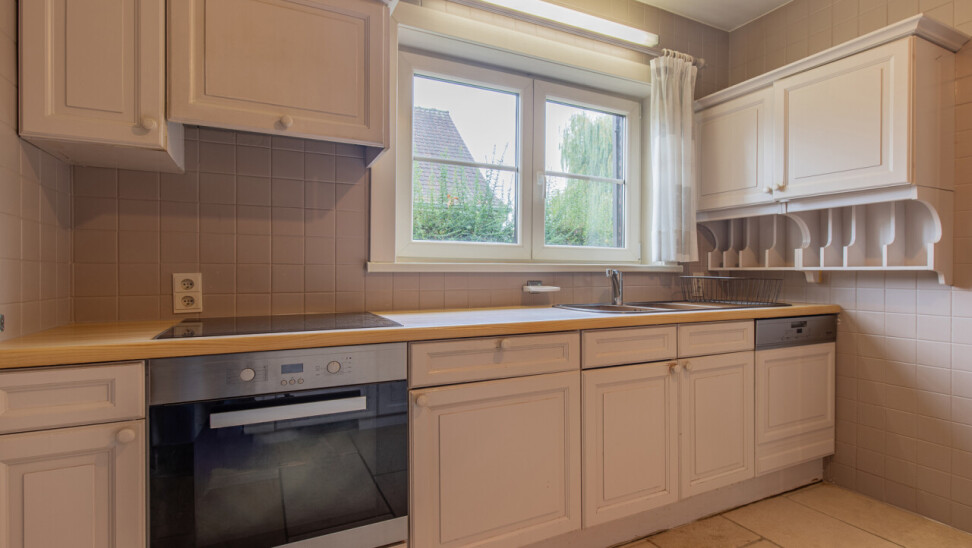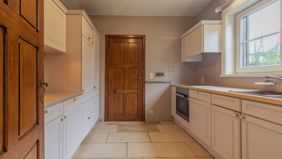 Bij het binnenkomen word je verwelkomd in een praktische inkomhal die leidt naar de leefruimte. Hier zorgen de gezellige salon en de eetplaats, met zicht op de tuin, voor een warme en uitnodigende sfeer. De keuken is apart maar kan worden geïntegreerd in de woonkamer.